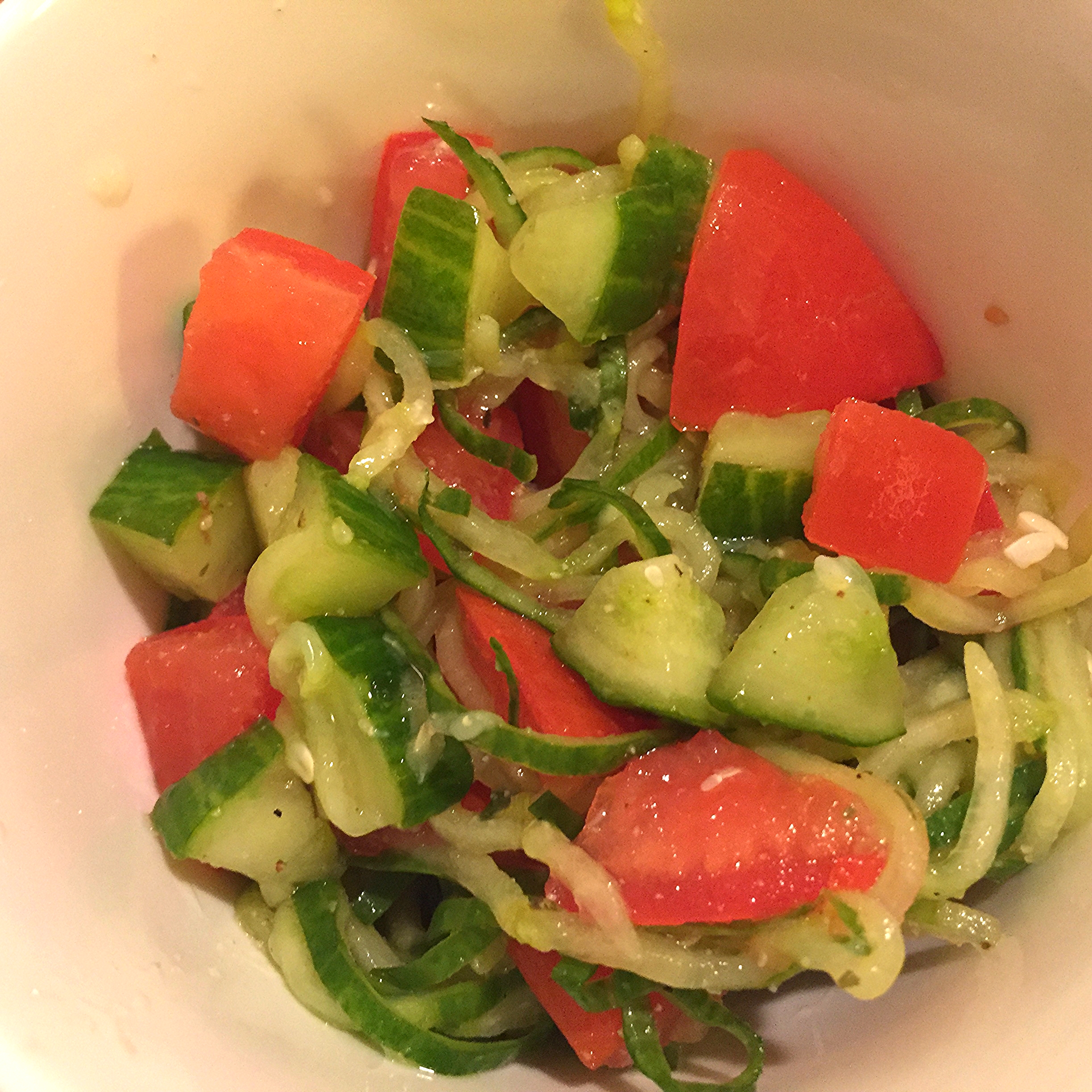 Spiralized cucumber salad with lemon and tomatoes