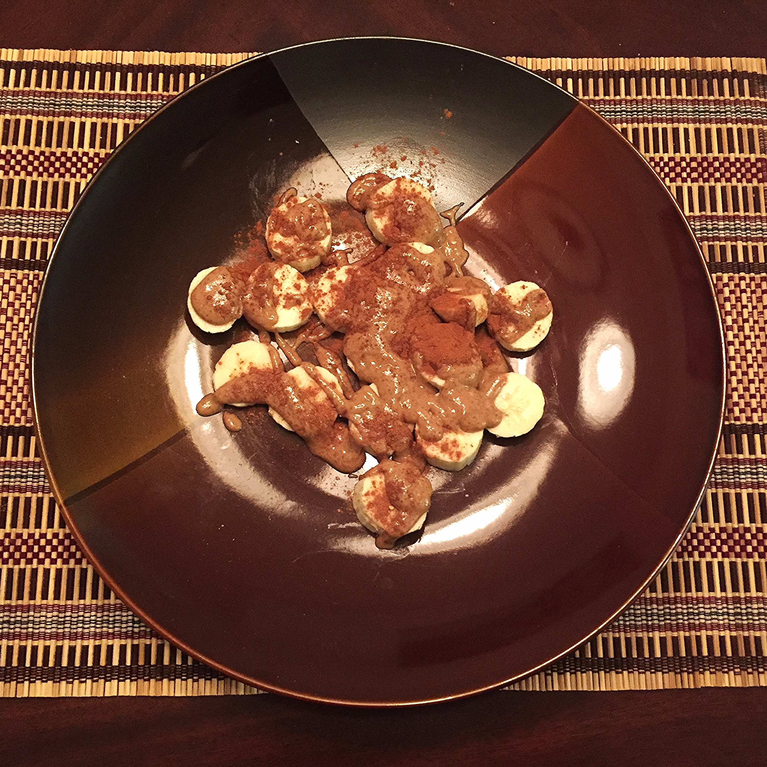 Snack: Green Banana and Almond Butter with Cinnamon and Pumpkin Pie Spice